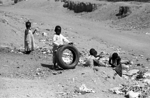 Children playing at a rubbish site near El Nil street in Omdurman (MEE/Jerzy Wierzbicki)