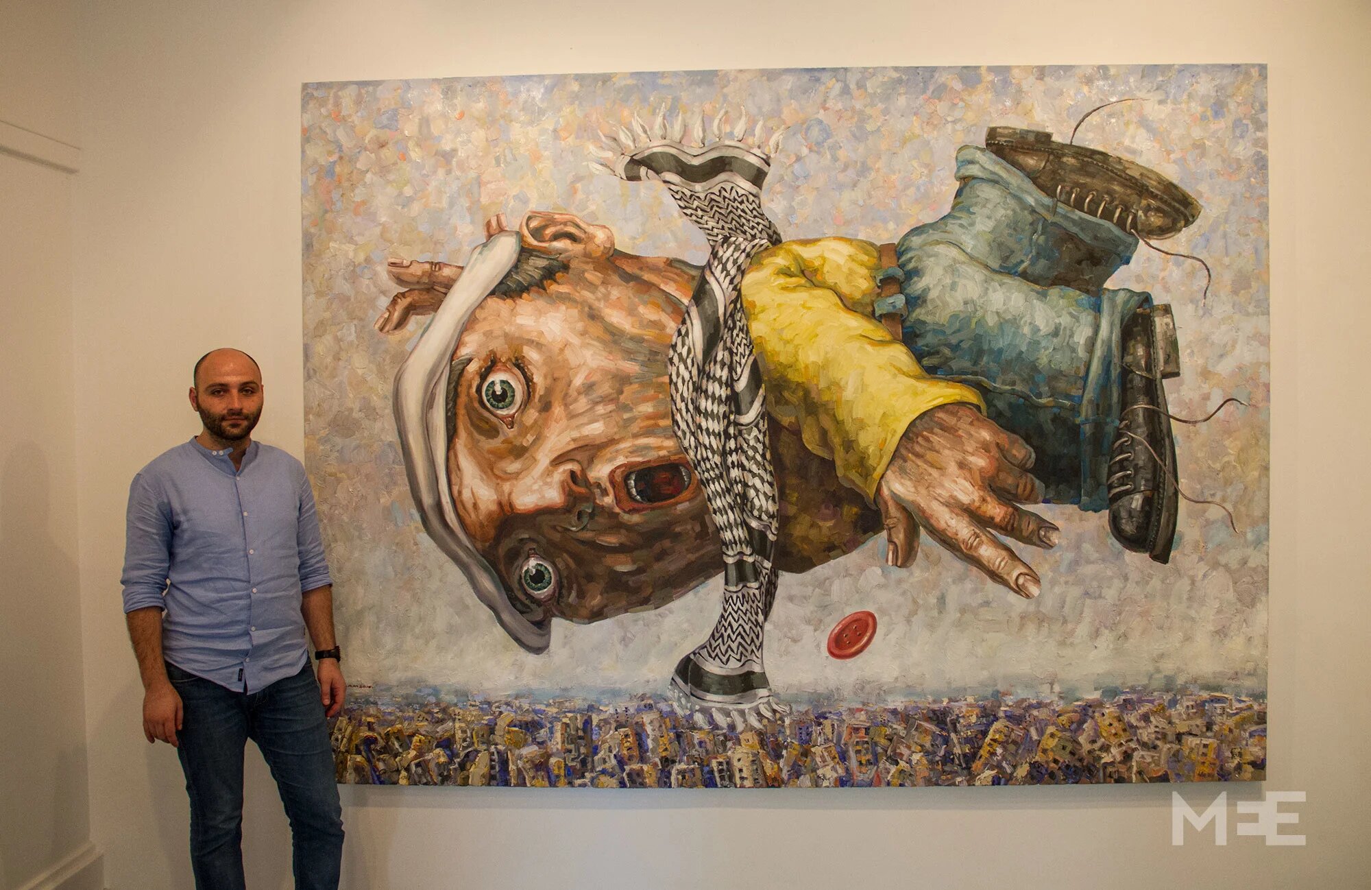 This is not the first time the Syrian artist has depicted hopeless characters trapped in preposterous situations. In June 2014, he showed his works at another exhibition, entitled Pickle, in Beirut. The crumpled and crushed characters in that exhibition symbolised the widespread public oppression throughout the Middle East, from military rule in Egypt to war-torn Iraq and Syria.