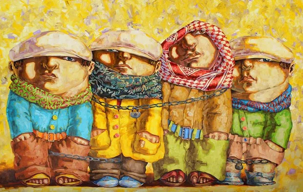 Syrian artist's puzzled figures crushed by centuries of oppression