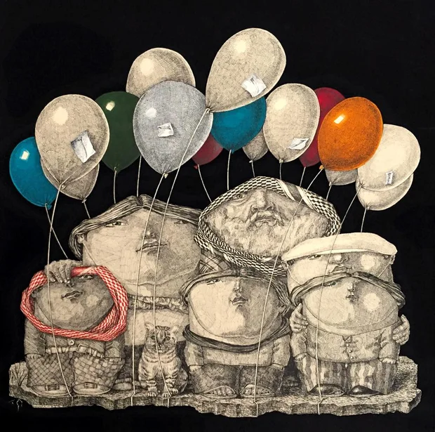 “Al-Sayed’s characters portray cynicism and hopelessness, but in an unusual way,” Lebanese art collector and manager of Agial art gallery, Saleh Barakat, told Middle East Eye. “He paints the figures in tragic situations, but you don’t know whether to laugh or to cry when you view the works. Above all, he presents tragedy without a drop of blood or any violent images.”