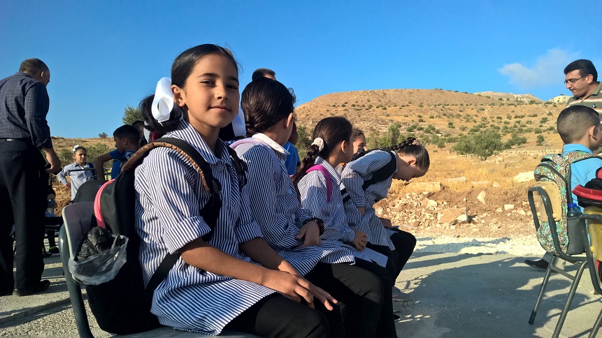 Living on the dusty hills southeast of Bethlehem city, the children of Jubbet al-Dhib must walk at least five kilometres to attend classes, through steep and hard-to-navigate terrain, at the risk of encountering wild dogs, Israeli soldiers, or residents of the adjacent illegal Israeli settlement of Nokdim – where Israeli Defence Minister Avigdor Lieberman lives.