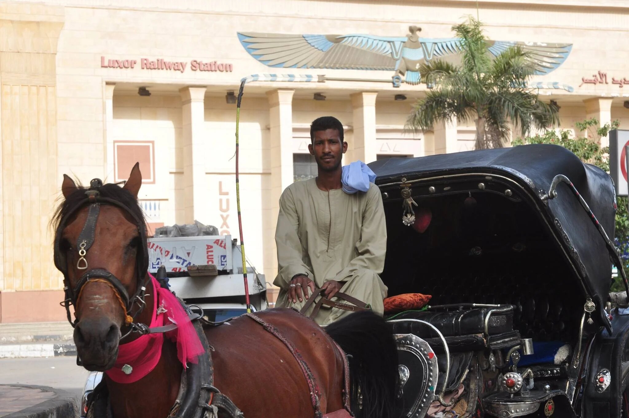 Mohamed Abdelhadi, 27, leans back on the seat of his horse-drawn carriage parked in Luxor’s main street, his sandals up on the footboard. Wearing a long, light robe called a galabiyya, he smokes one of the handful of cigarettes he can dig up the money to buy each day. Abdelhadi is waiting for a few tourists to pass by who might pay him for a ride on his carriage. “On the TV, they say that tourism, is coming back,” Abdelhadi says soberly. “But what I see right in front of me is that there’s nothing.”