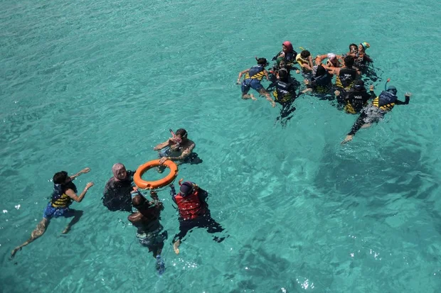 Tourists take part in a snorkeling tour in the Egyptian Red Sea resort of Sharm el-Sheikh on 7 August 2017 (AFP)