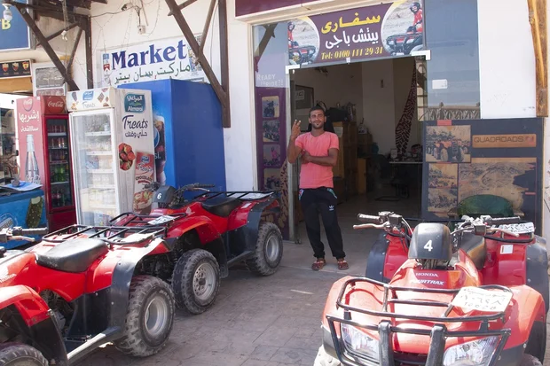 Islam Mohammad, a young Egyptian originally from Cairo, stands in front of the quad-bikes he tries to rent out to anyone who walks by. “I used to be busy all the time, every day,” he says. “We still have tourists here in Dahab, but they’re mostly Egyptians and I don’t like them. They throw rubbish everywhere.”
