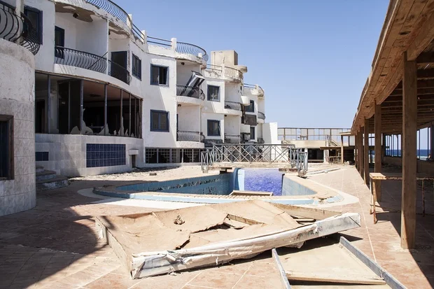 Some shops and restaurants are permanently closed and a number of hotels are abandoned, leaving empty shells of buildings that were once luxurious resorts.