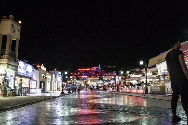Sharm El-Sheikh at night is not the bustling place it used to be, but signs of improvement are taking place (MEE/Kaja Bouman)