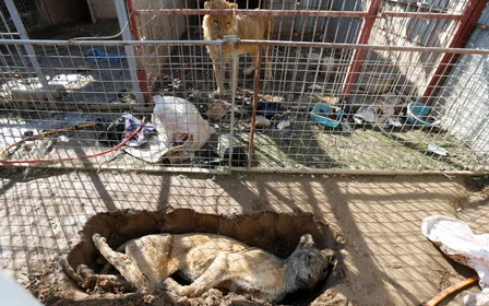 According to Four Paws, more than 80 animals died, and the 30 surviving animals were left without any food or water. The lions were under severe stress and their enclosures were damaged, so Four Paws intervened and transferred the animals to the New Hope centre in Jordan and then on to al-Ma'wa. The mummified corpses of dozens of animals littered the zoo.