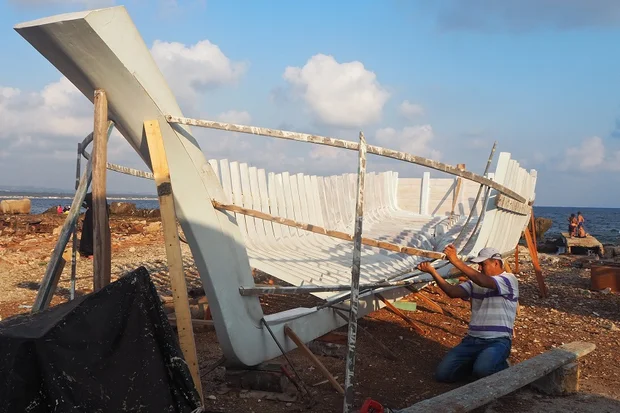 The demand for Arwad's wooden boats remains modest, but the Bahlowan family still has between 18 and 20 boats under construction at any one time. A recent drop in business is less connected to Syria's ongoing civil war but rather is due to pollution causing a big fall in stocks of fish in local waters.