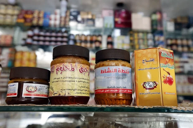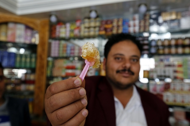 Some Yemenis believe mixing honey with plant extracts and natural oils increases its benefits and shops are abundant in honey products that are sold as traditional Arab medicine. In a shop in Sanaa, Abdul Razak Lutfallah, 35, is a strong believer in the healing properties of honey.