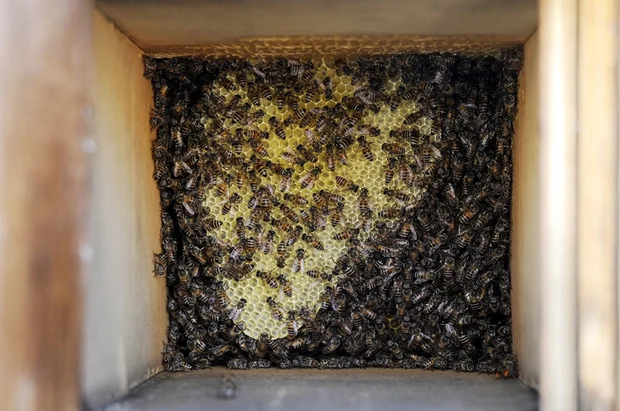 Othman Hassan's bees inside their beehive on 25 April 2017 (MEE/Mohamed Hamoud)
