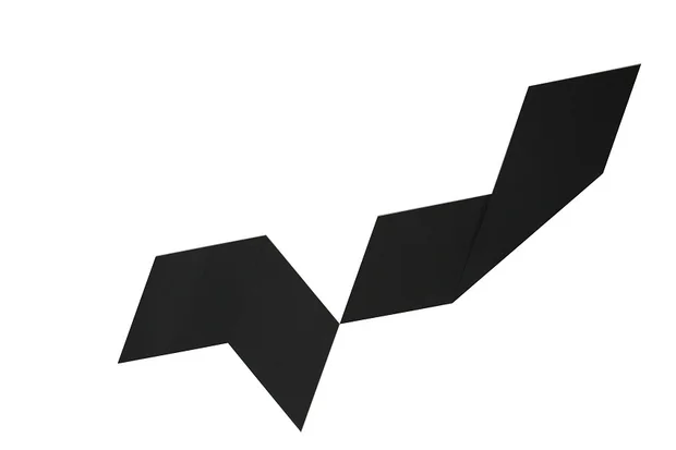 In his sculpture, Deux plis à 120, two black metal plates are folded in half, creating geometric shapes that meet at the tip of two angles. The sharp lines and perfectly measured forms are reminiscent of geometric abstraction from 20th century Europe. However, its steep, diagonal placement on the wall clearly echoes Arabic calligraphy.
