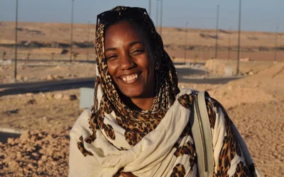 En 2011, elle a rejoint son père lors de son voyage vers ce que les Sahraouis appellent al-Bedir, littéralement la « campagne », mais c’est-à-dire la « zone libre » – les 20 % à l’est du territoire du Sahara occidental qui n’ont pas été bouclés par la « berme », les 2 700 km de mur défensif du Maroc, un espace extrêmement miné et faisant l’objet de patrouilles intensives, achevé en 1987.