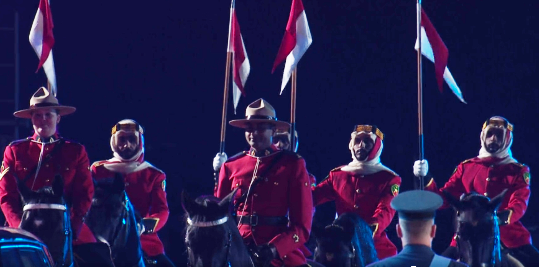 Traduction : « Les forces de défense de Bahreïn et la Gendarmerie royale du Canada ont escorté la reine depuis l’arène jusqu’au château de Windsor. Le personnel du Royal Central vous souhaite une bonne nuit et attend avec impatience les prochaines semaines. »
