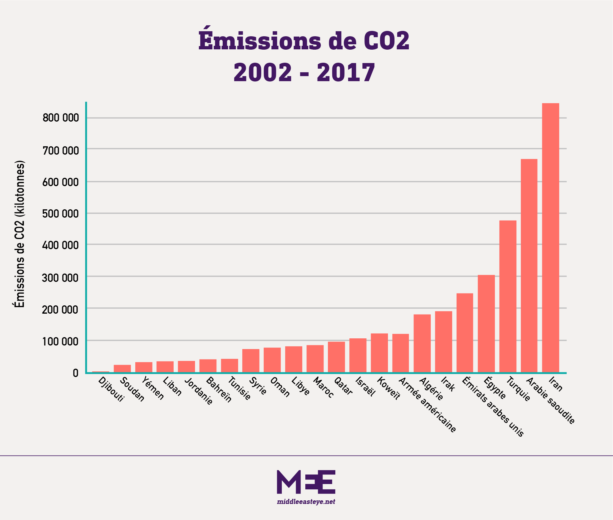 Si l’armée américaine était une nation du Moyen-Orient, elle serait le 8e plus grand émetteur de gaz à effet de serre de la région.