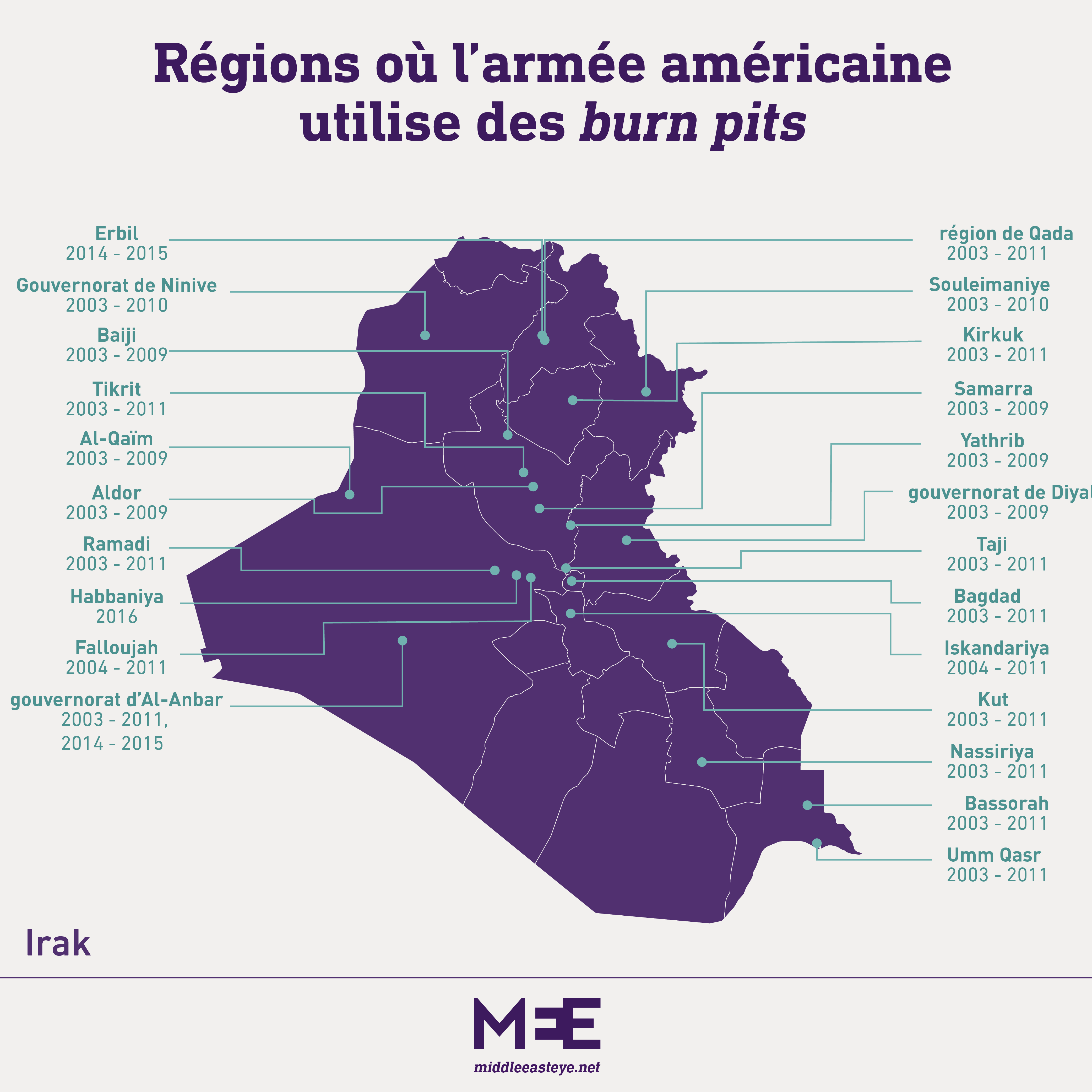 Le recours à des burn pits (fosse à feu) est une pratique commune de l’armée américaine en Irak, au Koweït, au Qatar, en Arabie saoudite, aux Émirats arabes unis, à Oman et à Bahreïn, selon le département des Anciens combattants des États-Unis.