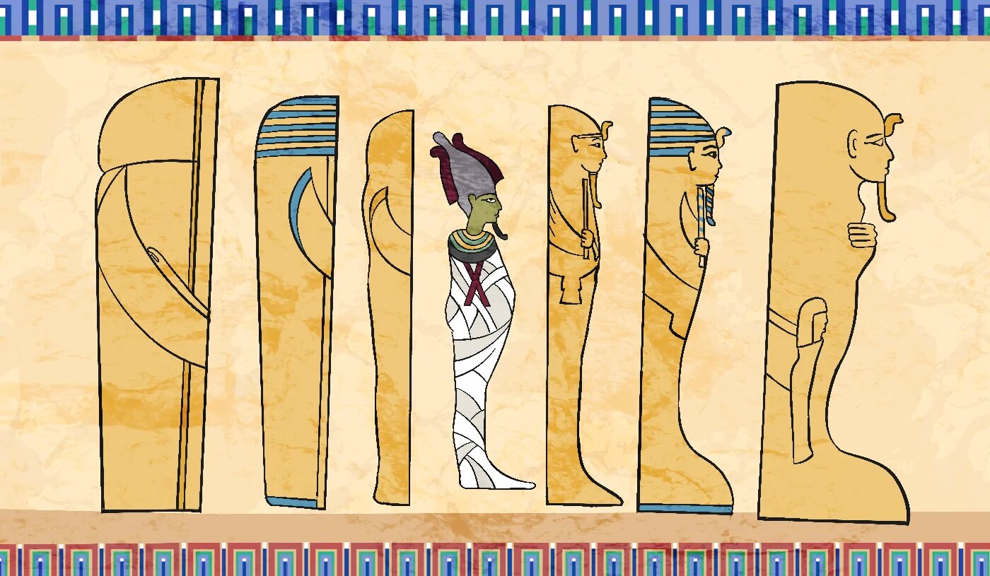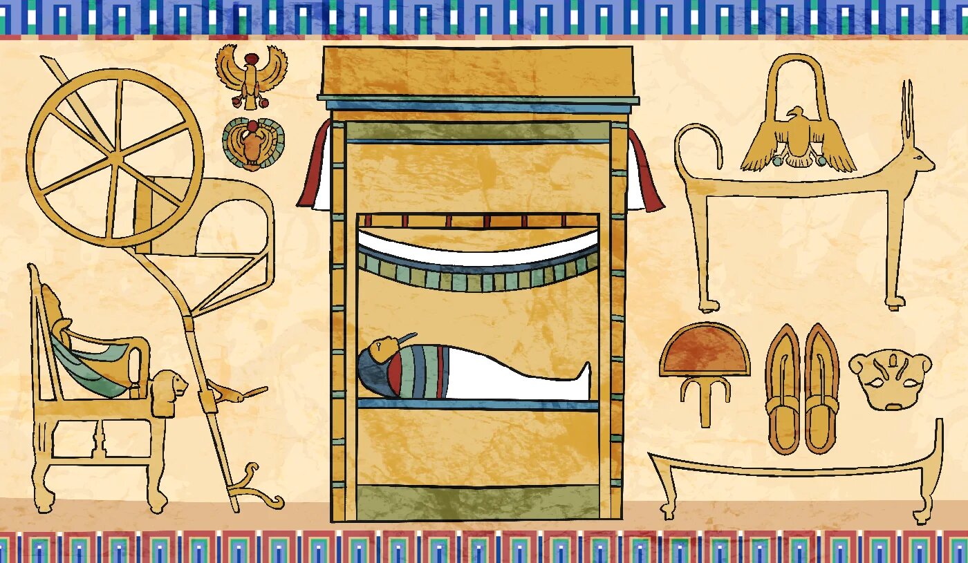 Le corps de Toutânkhamon a été préparé pour l’au-delà à l’aide des traditionnelles méthodes de momification. Il a été couvert de bandages trempés dans la résine et placé dans trois cercueils imbriqués les uns dans les autres et un sarcophage de granit ainsi que quatre chapelles en bois.