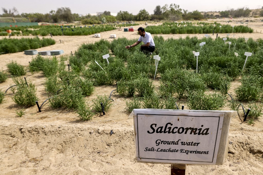 Des fermes dans le désert aux supermarchés, les Émirats arabes unis testent la culture de la salicorne, plante utilisée tant pour ses qualités nutritionnelles qu’agricoles car adaptée aux milieux salins et arides de ce pays du Golfe.
