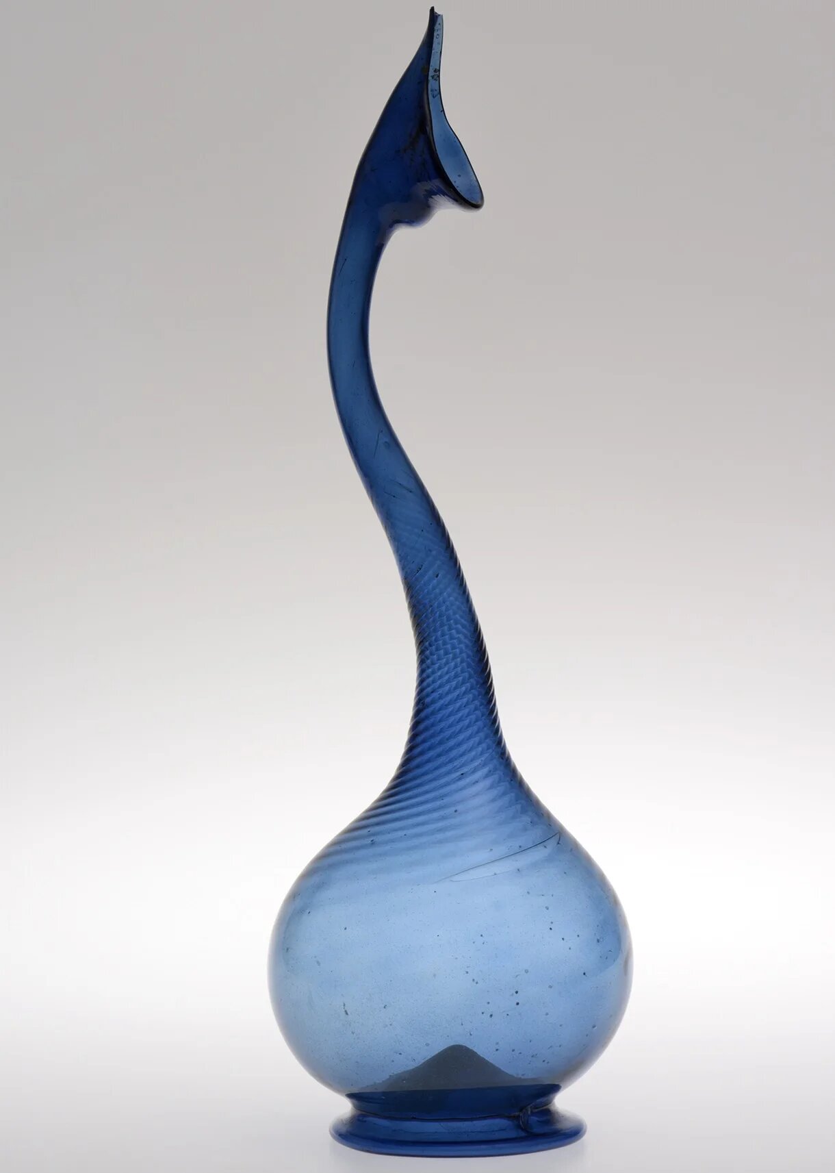 « Ces us me ramènent à mon enfance. Ma mère avait pour habitude d’accueillir les invités à la porte de notre maison en les aspergeant d’eau de fleur d’oranger. Elle possédait un aspersoir en cuivre qu’elle avait ramené dans son trousseau de jeune mariée et le conservait jalousement dans le fond de son armoire », raconte à MEE avec émotion Fairouz, une Algérienne rencontrée à l’exposition. (Photo : aspersoir, Iran (?), XIXe siècle (?), verre soufflé et moulé, bleu cobalt, 35,3 x 10,5 cm, Lyon, musée des Beaux-Arts de Lyon, D147)