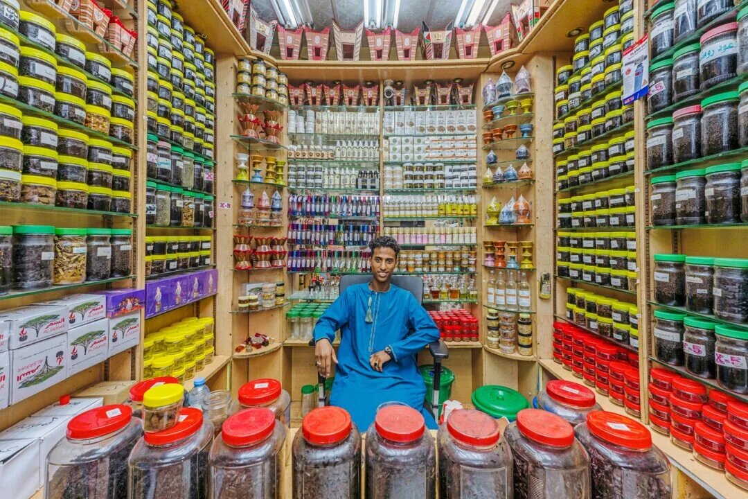 L’exposition note aussi le rôle des savants arabes dans le perfectionnement des techniques de distillation à partir du VIIIe siècle, notamment la production d’eaux parfumées et d’huiles essentielles. Pour sa part, le parfumeur est considéré comme un apothicaire qui détient un savoir-faire lui permettant de déterminer les vertus cosmétiques et médicinales des essences. (Photo : Vladimir Antaki, The Guardians – Mohamad Obeidi, Mascate, Oman, 2023, impression sur papier fine art contrecollé sur Dibond, tirage d’exposition)