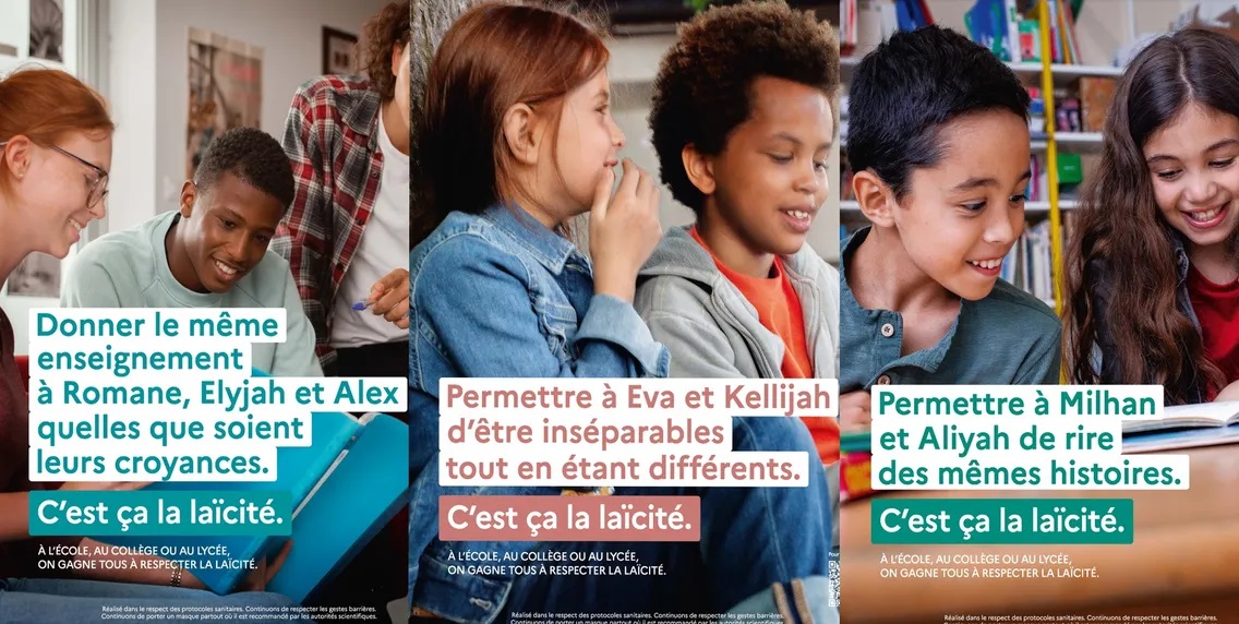 « Chacune des affiches met en évidence un bénéfice de la laïcité, en lien avec les valeurs de la République : la liberté, l’égalité, la fraternité », a expliqué le ministère, en précisant que « cette campagne est une nouvelle illustration de l’ensemble de la dynamique pédagogique engagée depuis plusieurs années autour des valeurs de la République ».
