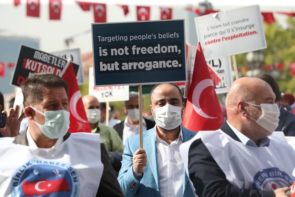 Des manifestations ont eu lieu à Istanbul mardi, au lendemain de l’appel du président turc Recep Tayyip Erdoğan à ne « jamais » acheter de produits français (Adam Altan/AFP).