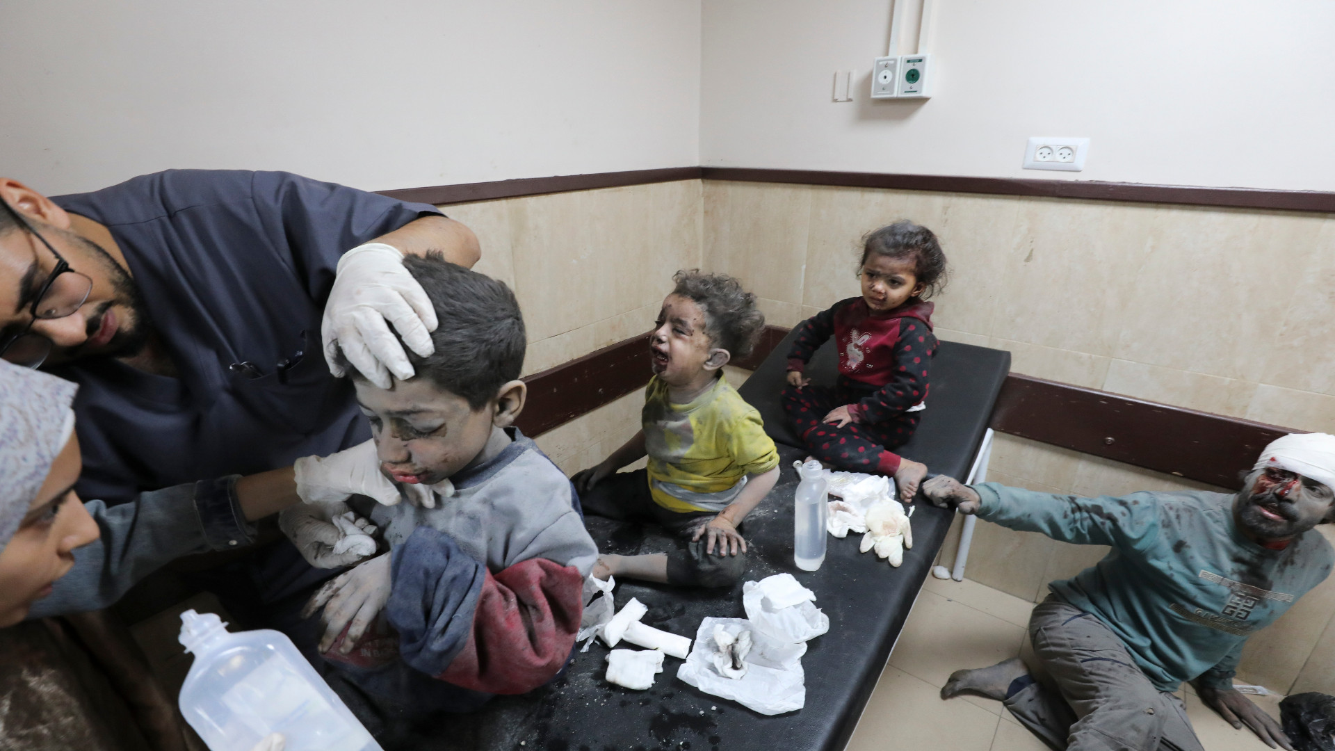 Des enfants palestiniens blessés lors des bombardements israéliens de la bande de Gaza sont soignés à l’hôpital al-Aqsa de Deir al-Balah, le 21 novembre (AP)