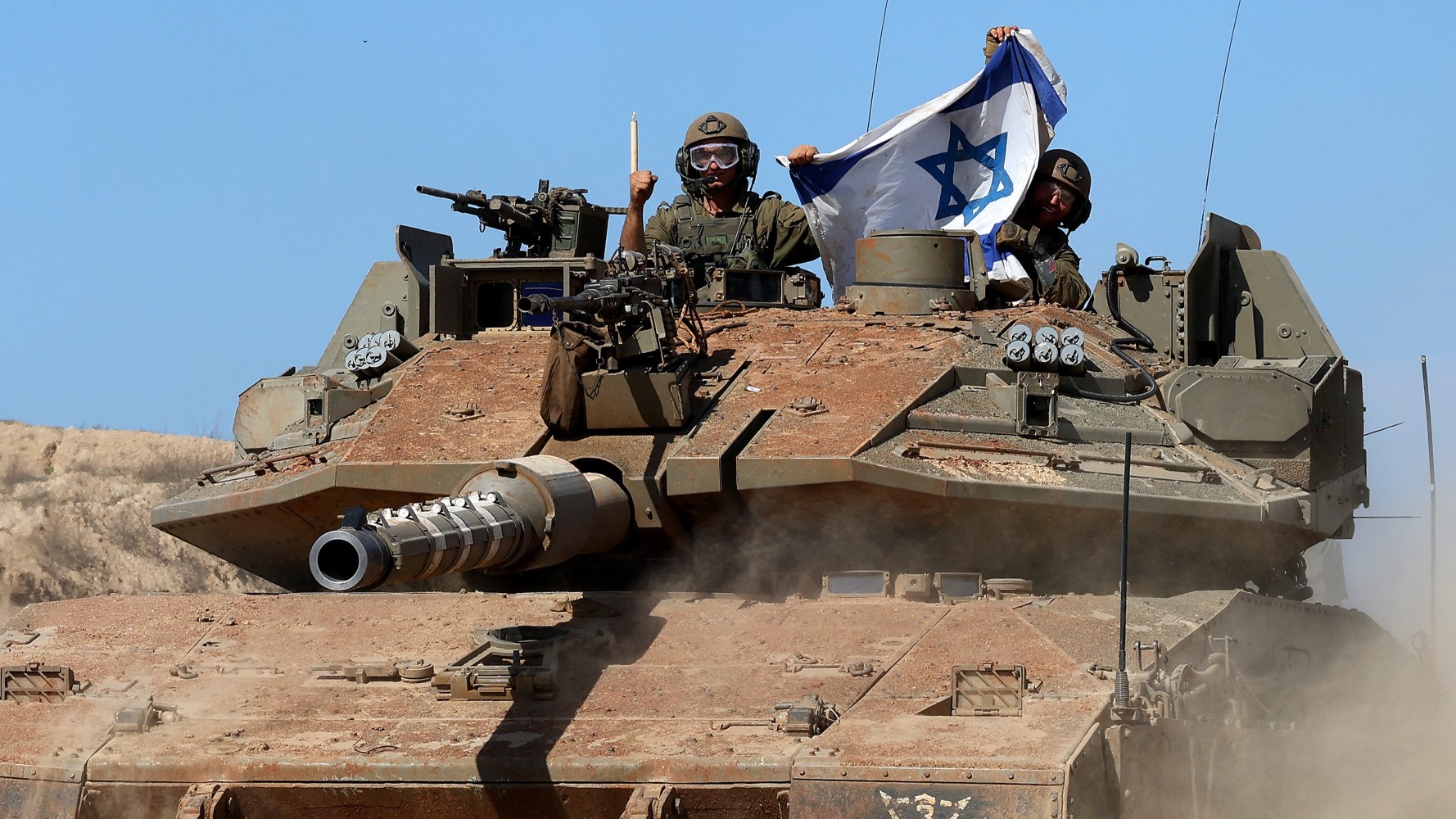 Des soldats israéliens à bord d’un char se préparent à entrer dans Gaza, le 15 février (Jack Guez/AFP)