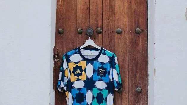 Ce nouveau design, selon l’équipementier sportif allemand, tire son inspiration du palais de Mechouar à Tlemcen, dans le Nord-Ouest de l’Algérie.