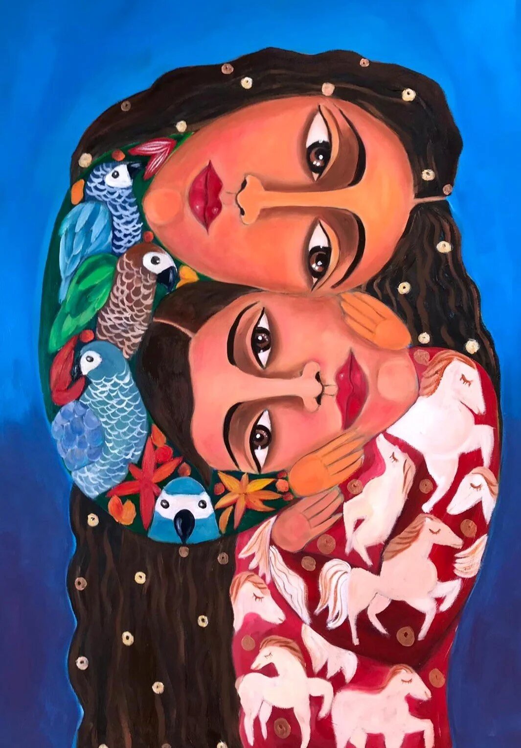 L’œuvre de Malak Mattar est un monde d’énergie féminine : elle peint surtout des femmes, des femmes qu’elle connaît ou de passage. « Ce n’est pas intentionnel », concède-t-elle. « Sans même m’en rendre compte, je retrouve les visages de ces femmes sur ma toile. » Malak Mattar tient à rendre visibles ces femmes et sa patrie, mais aussi à les faire perdurer dans les mémoires.