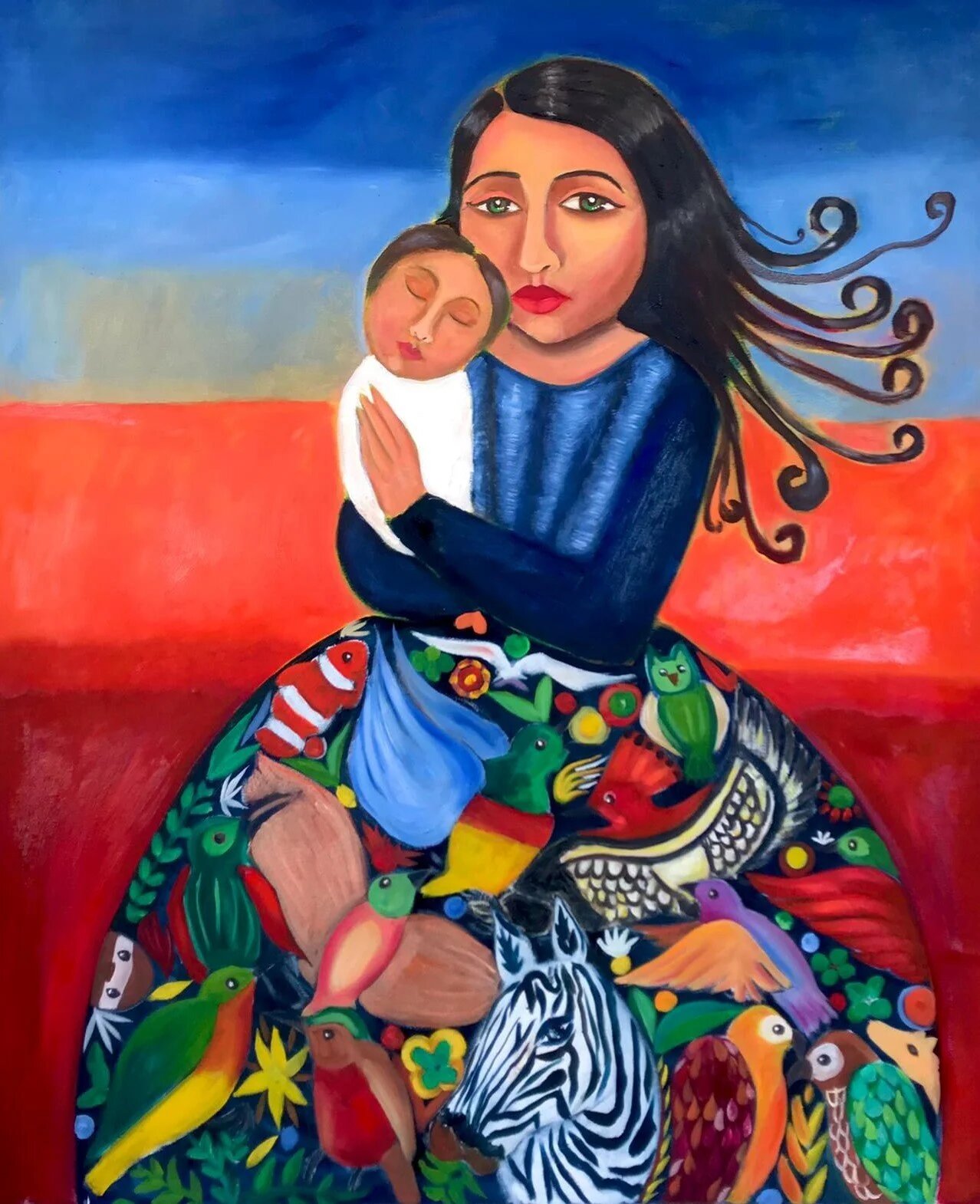 La femme représentée sur le tableau The Only Zebra in Gaza porte une robe sur laquelle sont brodés de nombreux animaux exotiques, dont un zèbre. « Gaza avait autrefois un zèbre dans son petit zoo, mais il a été tué par un raid aérien avec de nombreux autres animaux. Le gardien du zoo, anéanti par la perte de son zèbre qu’il aimait tant, a acheté un âne et a peint des rayures noires et blanches sur son corps », se souvient-elle.