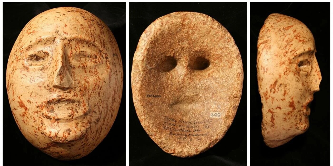 « C’est un objet fascinant, nous pensons qu’il vient de la culture matérielle rituelle de la période néolithique, il y a environ 9 à 10 000 ans », explique Felicity Cobbing, directrice générale du PEF. Étant donné que Thomas Chaplin était un associé du PEF et qu’il aida souvent l’organisation, il est probable que le masque ait été donné au fonds après sa mort.