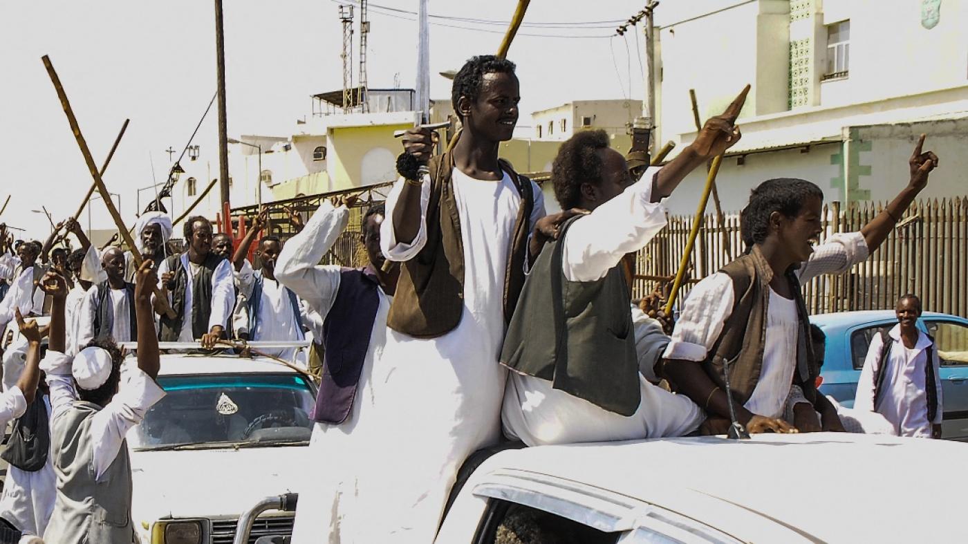 Des manifestants antigouvernementaux à Port-Soudan protestent contre un accord de paix signé entre le gouvernement et des groupes rebelles, le 17 octobre 2021 (AFP)