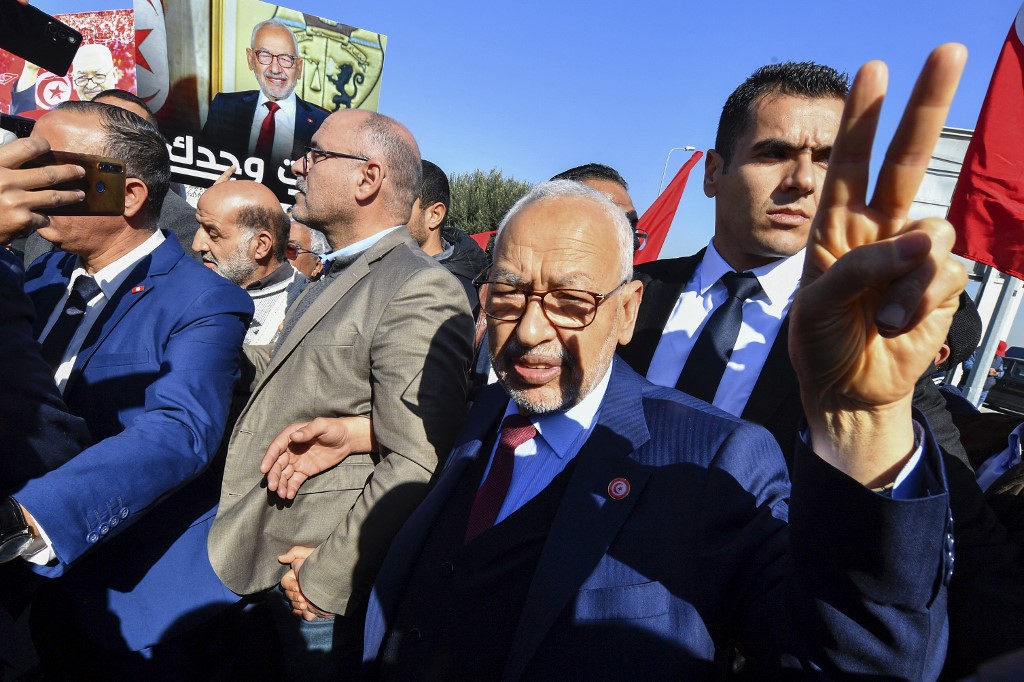 Le dirigeant de 82 ans a été condamné en vertu d’une plainte d’un syndicat de policiers dénonçant des propos qu’il avait tenus début 2022 lors de funérailles d’un responsable d’Ennahdha dont il avait assuré qu’il « ne craignait ni les puissants ni les tyrans », ce mot désignant les policiers, selon le dossier d’accusation.