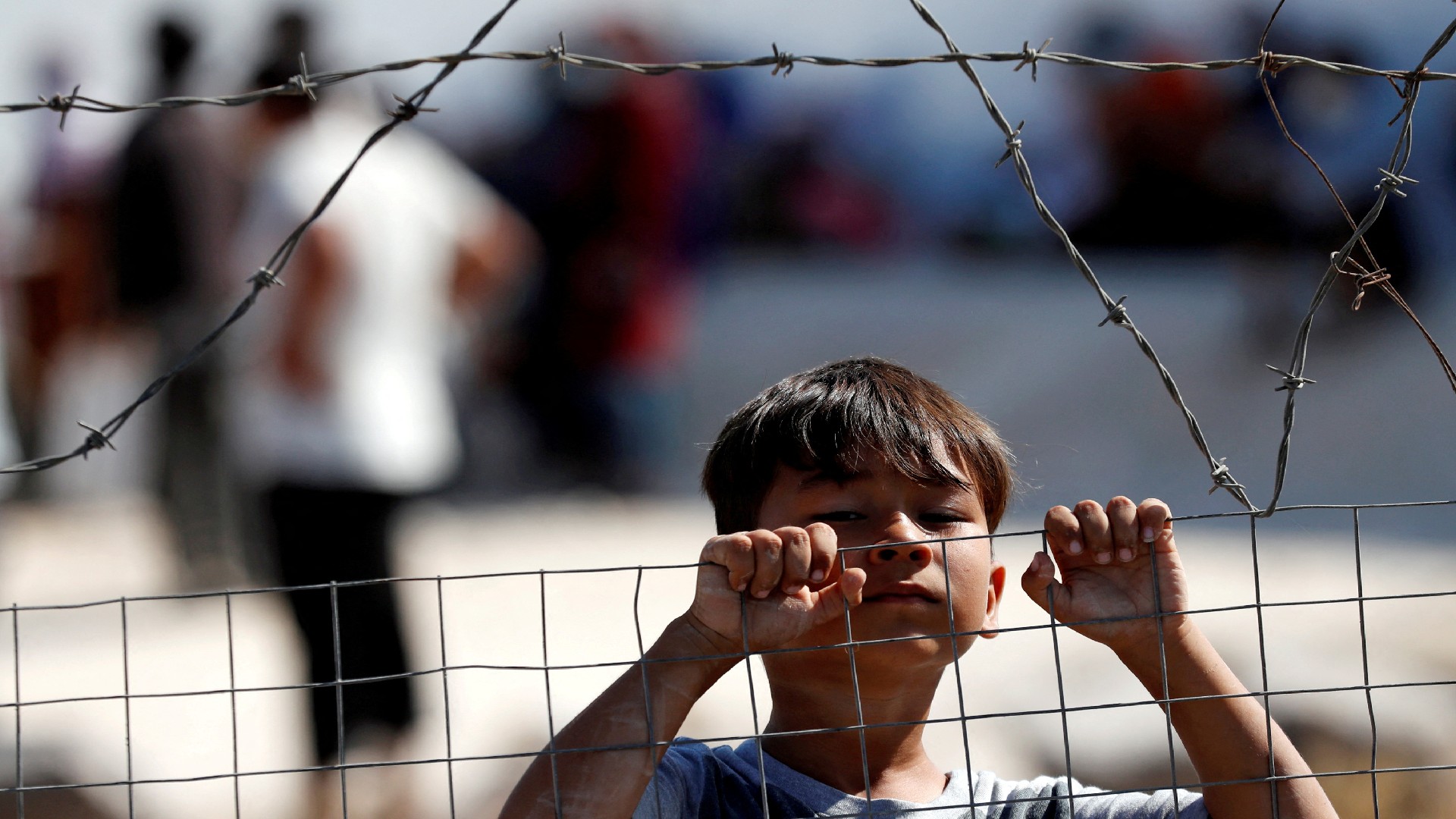 Un enfant dans le nouveau camp temporaire pour migrants et réfugiés de l’île grecque de Lesbos, le 23 septembre 2020 (Reuters/Yara Nardi)