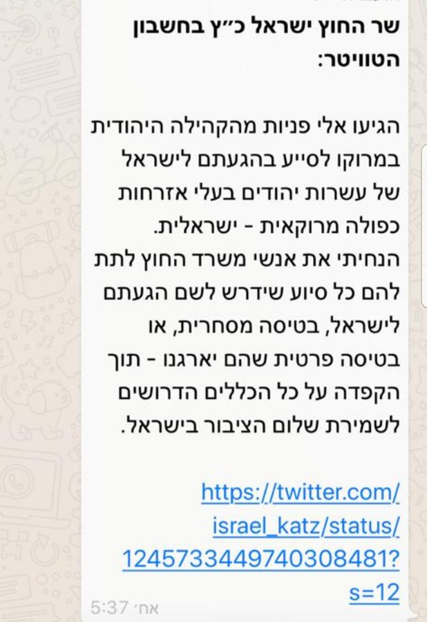Ce tweet aurait été perçu par les officiels marocains comme une accusation implicite formulée par Israel Katz contre les autorités chérifiennes de non-assistance à leurs ressortissants.