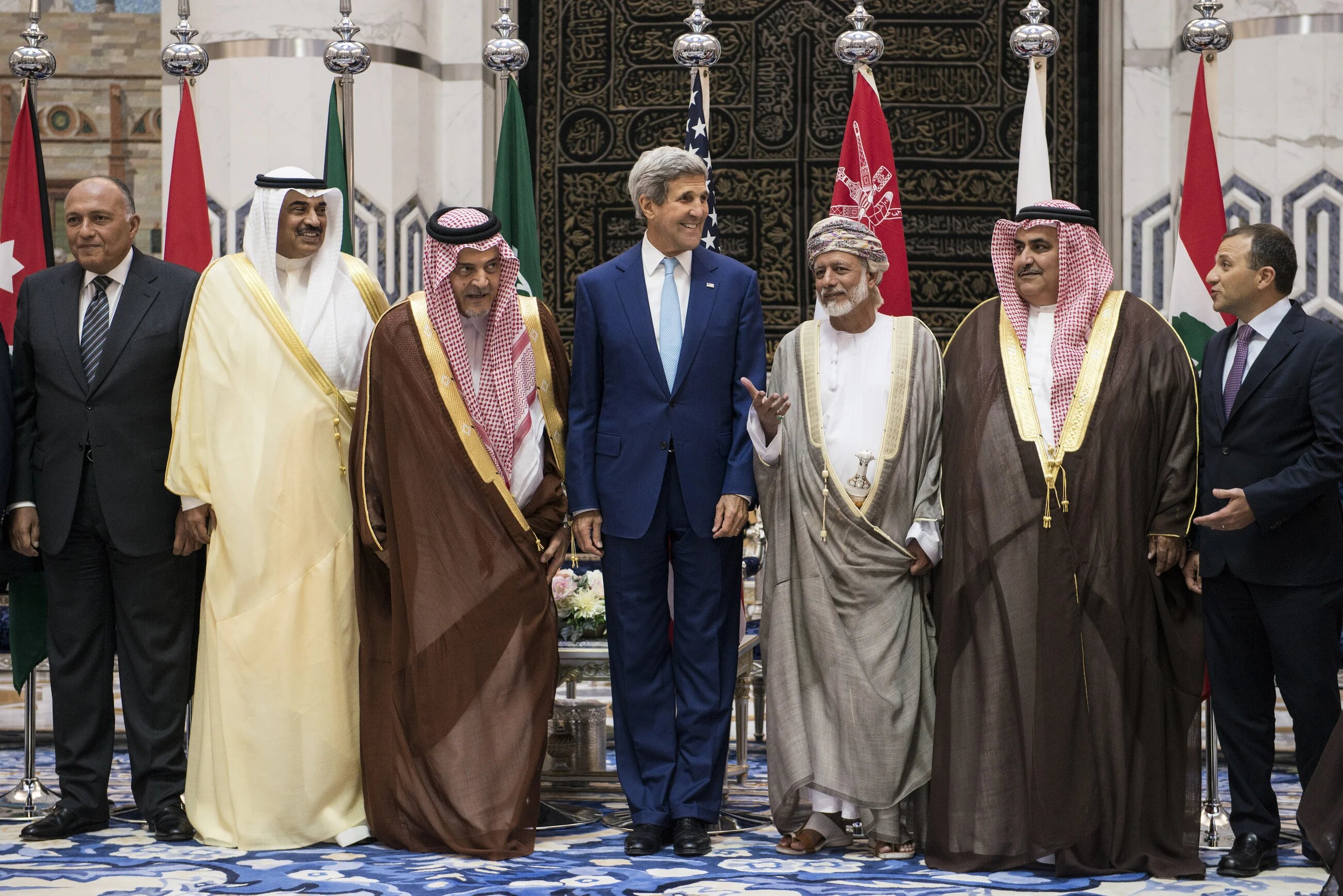 Légende photo : les Ministres des Affaires étrangères de l'Egypte, du Koweït, de l'Arabie saoudite, d’Oman, du Bahreïn et du Liban se joignent au secrétaire d'Etat américain John Kerry en Arabie saoudite pour discuter de la lutte contre les militants de l’Etat islamique (AFP).
