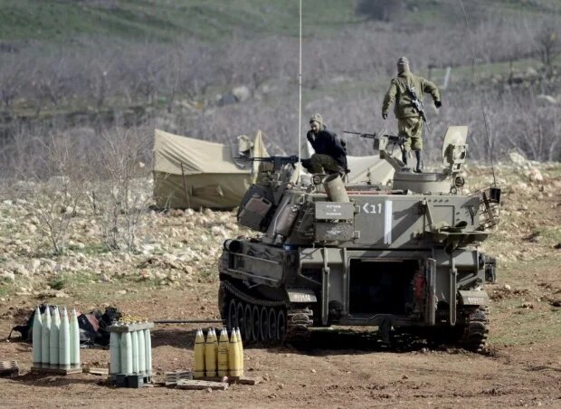 Légende photo : blindé israélien posté près de la frontière avec le Liban, dans la zone du plateau du Golan annexée par Israël, le 29 janvier 2015 (AA).