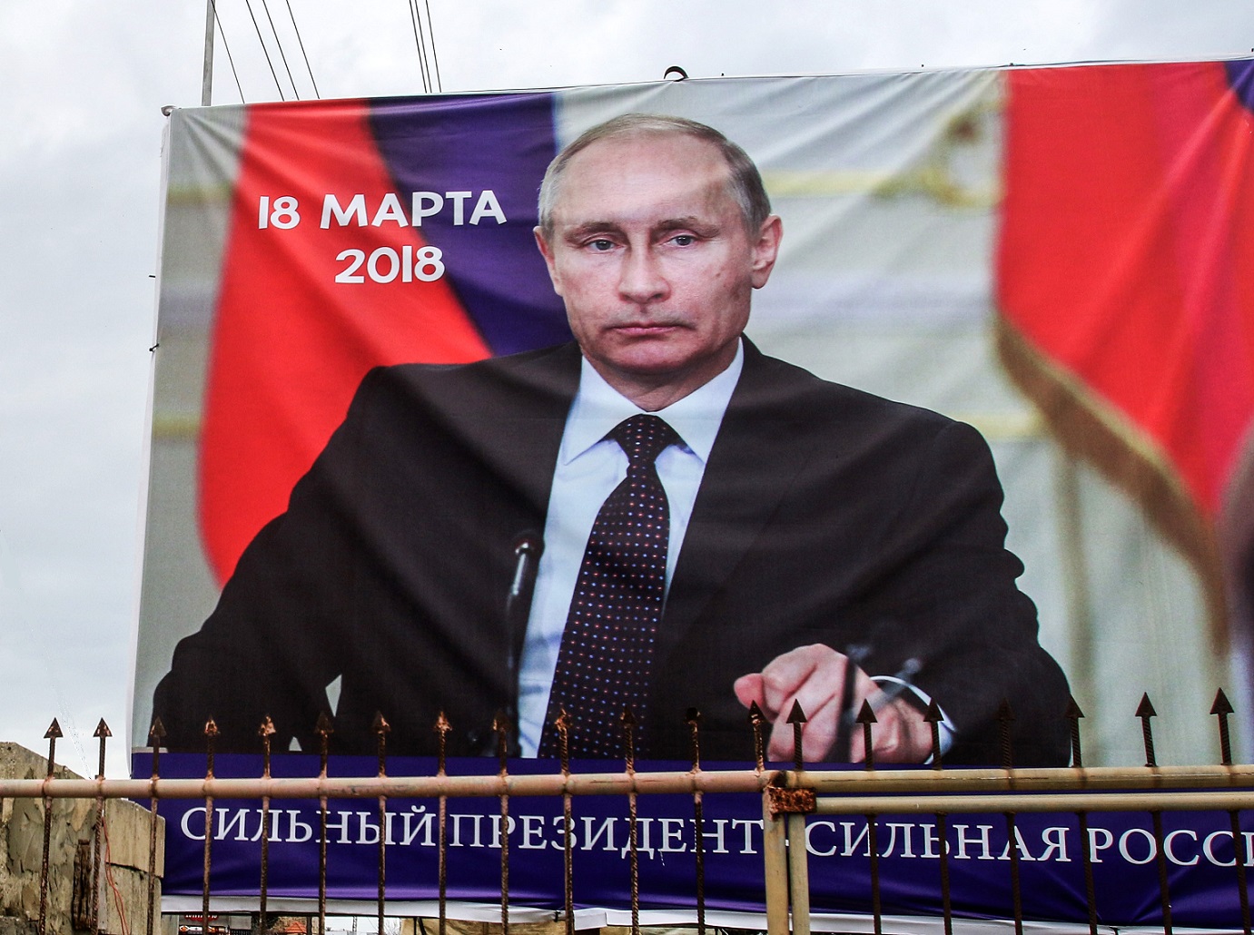 Photo : affiche électorale en faveur du président russe Vladimir Poutine adressée à la diaspora russe au Liban à l’occasion des élections présidentielles du 18 mars 2018, photographiée le 9 mars 2018 dans la ville libanaise de Tyr (AFP).