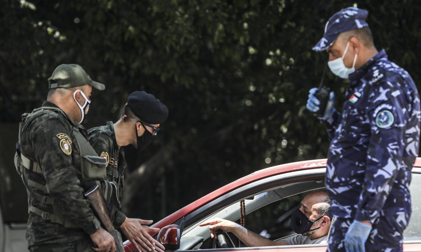 Les forces de sécurité de l’Autorité palestinienne contraignent un véhicule à s’arrêter à un poste de contrôle à Naplouse (Cisjordanie occupée), le 2 juillet 2020, après l’imposition d’un nouveau confinement à cause du COVID-19 (AFP)