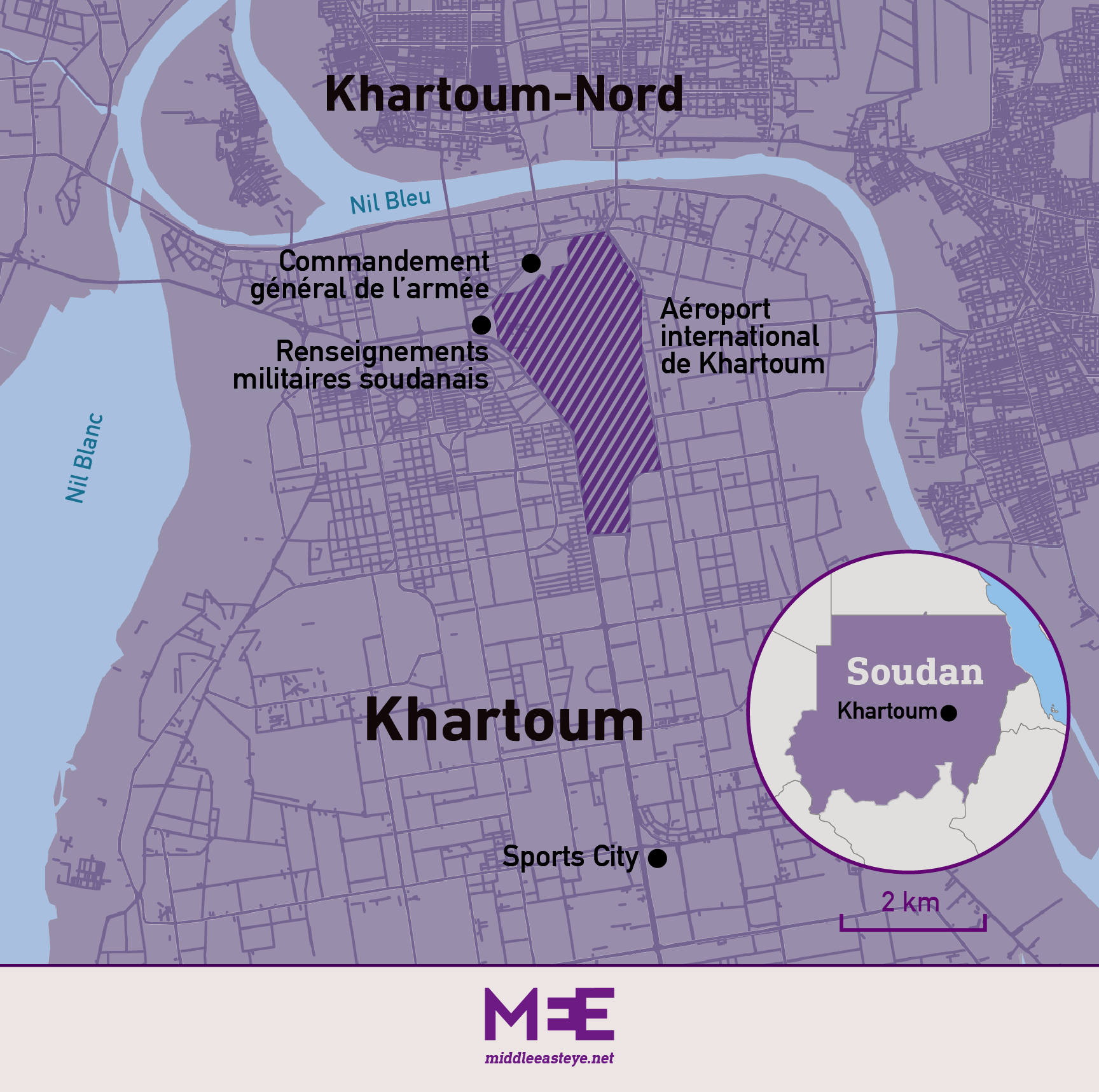 Des témoins oculaires à Khartoum indiquent à MEE que les premiers coups de feu ont été tirés à Soba, puis à Sports City, tandis que des sources proches de l’armée soutiennent que les combats ont commencé à l’aéroport avant de se déplacer vers le siège du commandement général.