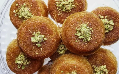 On peut également citer l’asabe zainab, une pâtisserie frite d’Oman qui est trempée dans le sirop, et le knafeh, l’un des desserts caractéristiques du Moyen-Orient.