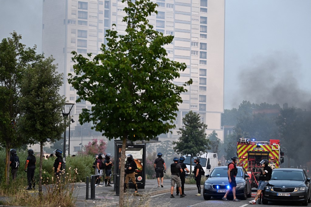 Des policiers anti-émeutes sont déployés à Toulouse, dans le sud-ouest de la France, le 28 juin 2023, au lendemain de la mort de Nahel Merzouk, adolescent tué lors d’un contrôle policier à Nanterre (AFP/Lionel Bonaventure)
