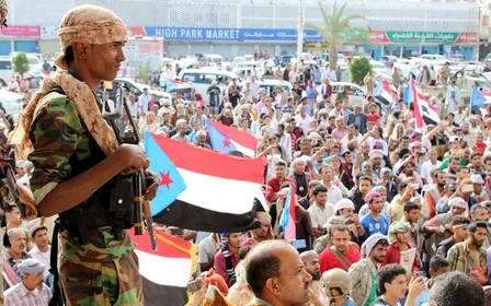 Des partisans du Conseil de transition du sud, sécessionniste, manifestent en faveur de la division du Yémen, à Aden le 7 juillet 2017 (Reuters)