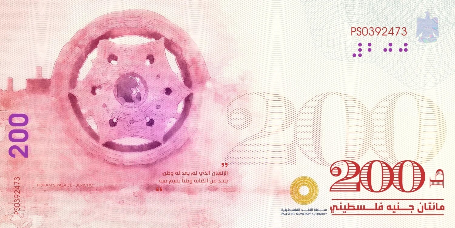 Le dessin de Naji pour le recto du billet de 200 livres représente le palais d’Hisham à Jéricho. Nombreux sont ceux qui souhaitent que la Palestine ait sa propre monnaie, mais l’Autorité monétaire palestinienne (AMP) a déclaré à MEE que celle-ci devrait se conformer à des accords qui requièrent l’approbation d’Israël, de la Banque mondiale et du Fonds monétaire international.
