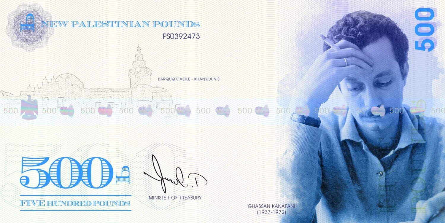 Le verso du billet de 500 livres montre l’écrivain et activiste politique Ghassan Kanafani à côté du château de Barquq à Khan Younès, dans la bande de Gaza. Naji envisage désormais d’exposer ses dessins. « J’espère que mon projet remontera jusqu’aux responsables nationaux et internationaux car laisser les gens décider eux-mêmes ne doit pas être une chose limitée au passé. »