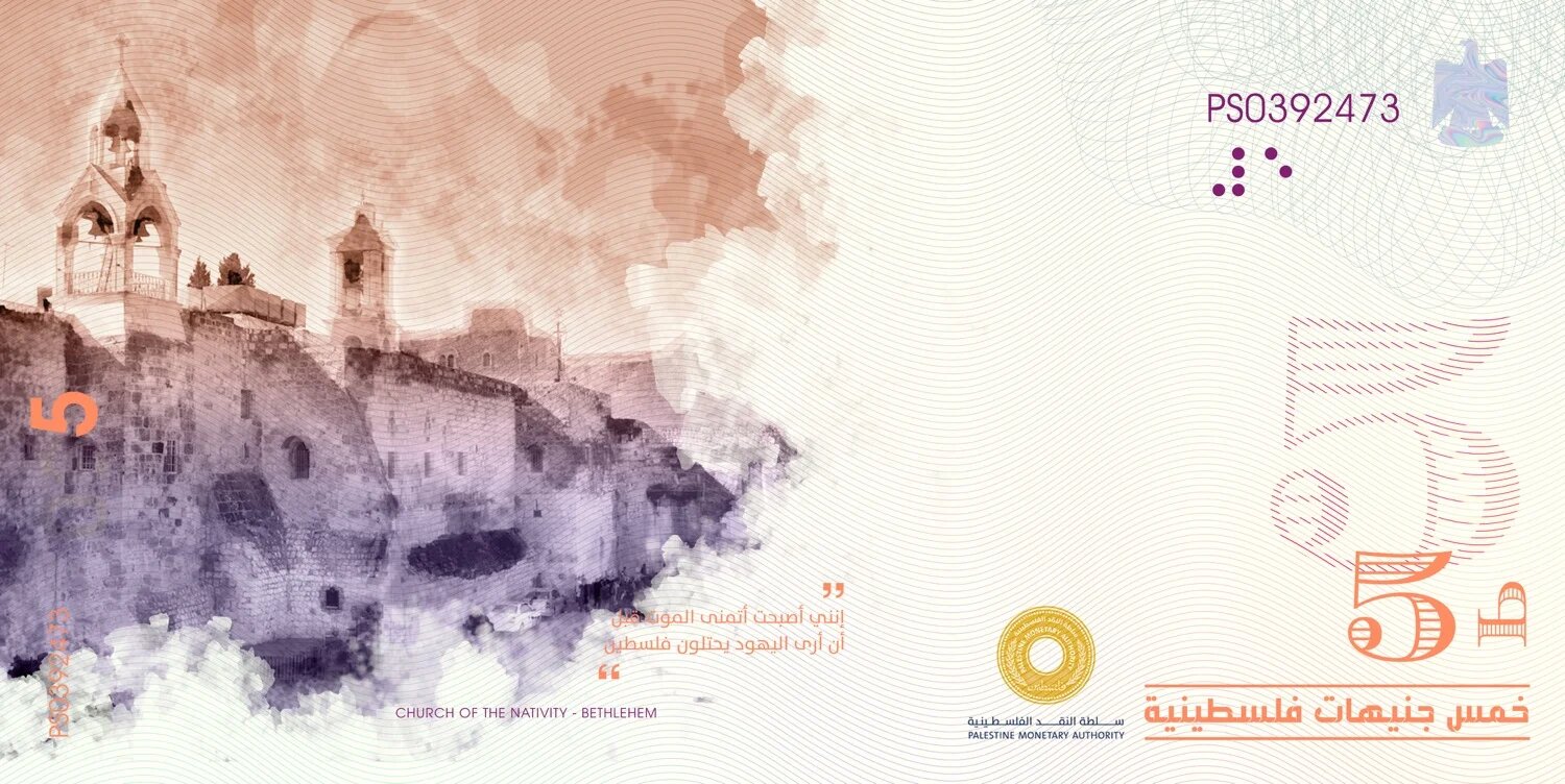 Jehad Naji explique que le plus difficile a été de choisir les personnalités et les monuments à utiliser. Le nationaliste palestinien Abd al-Kader al-Husseini, commandant et fondateur de l’Armée de la guerre sainte (Jaych al-Jihad al-Mouqaddas) au cours de la guerre de 1947-1948, figure au verso du billet de 5 livres. « Au début, j’avais décidé de ne refléter dans la monnaie que la culture, [mais] je ne pouvais pas ignorer Abd al-Kader al-Husseini », affirme-t-il. « Personne ne peut nier le rôle de la tendance islamique en Palestine. »
