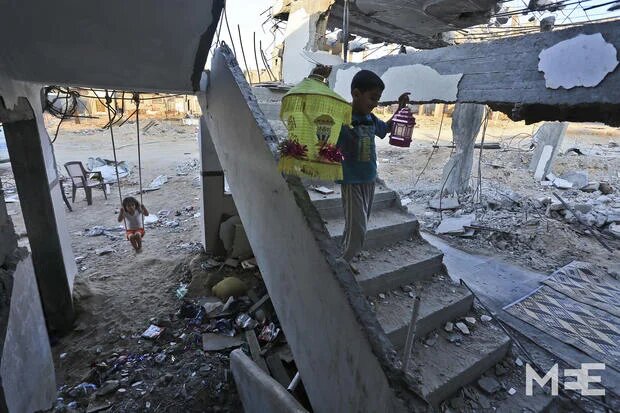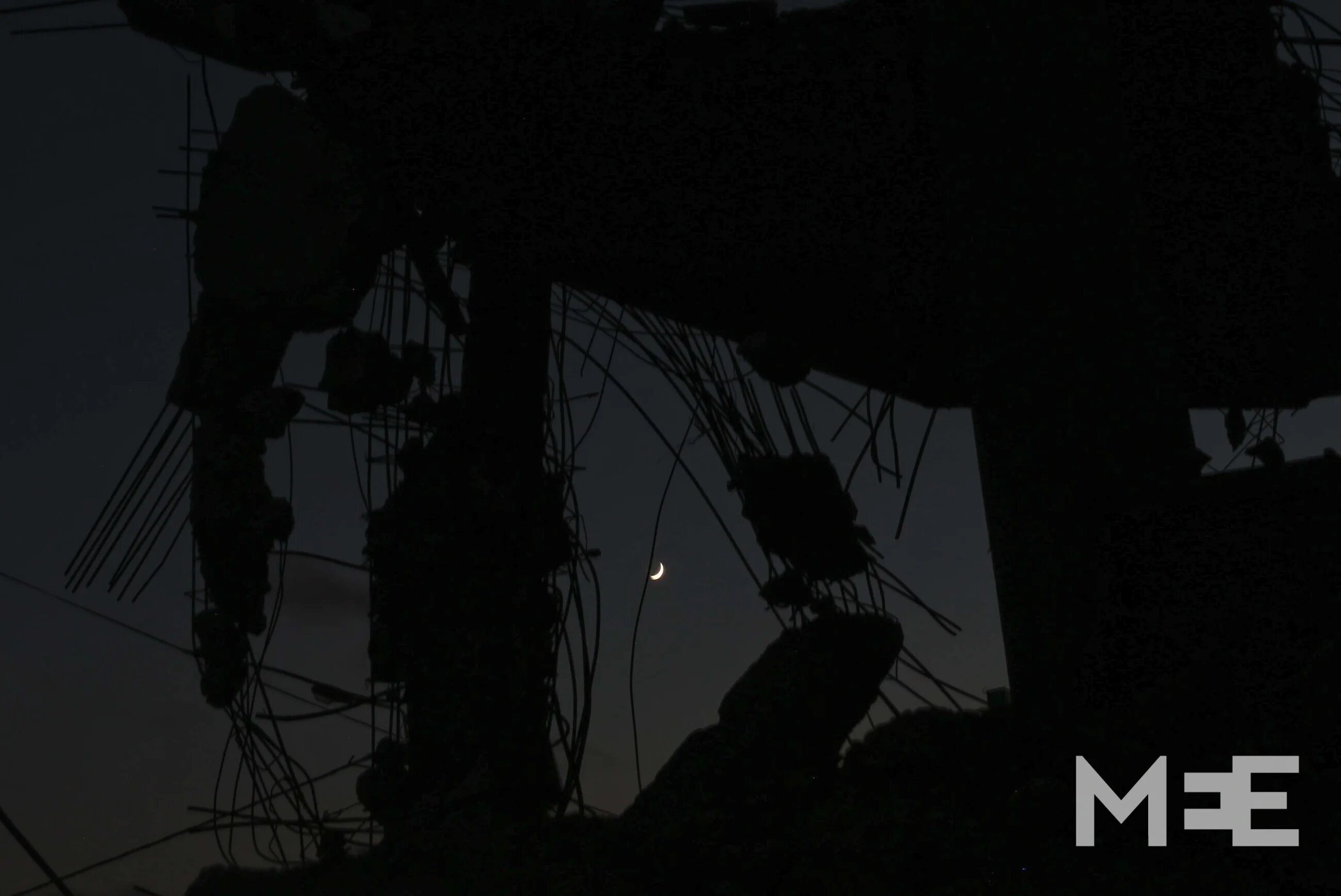 Croissant de lune du ramadan à travers les décombres des maisons de Gaza (MEE/Mohammed Asad)