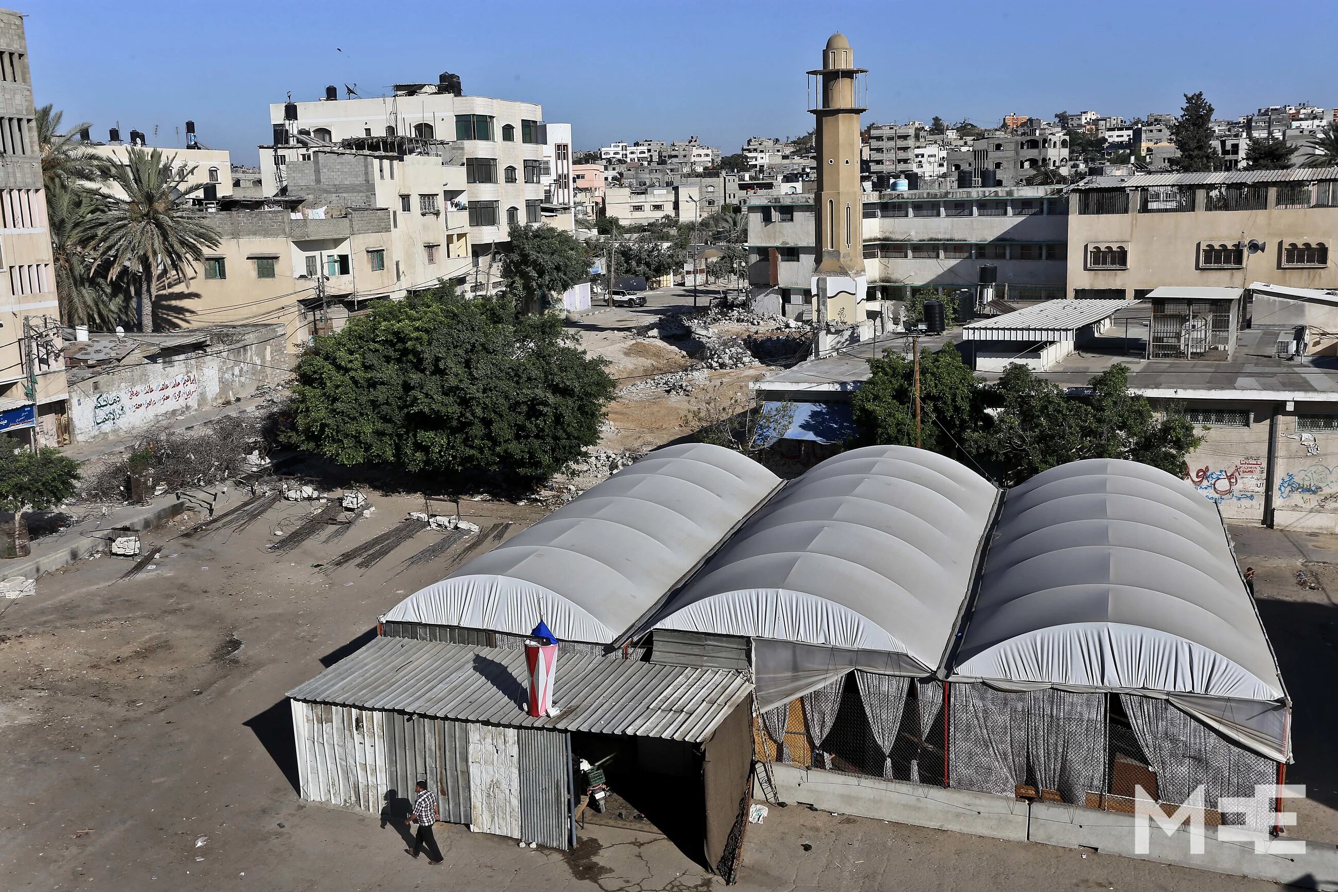 Avec toutes les mosquées qui ont été détruites lors de la dernière attaque contre Gaza, des tentes en nylon ont été improvisées en mosquées (MEE/Mohammed Asad)