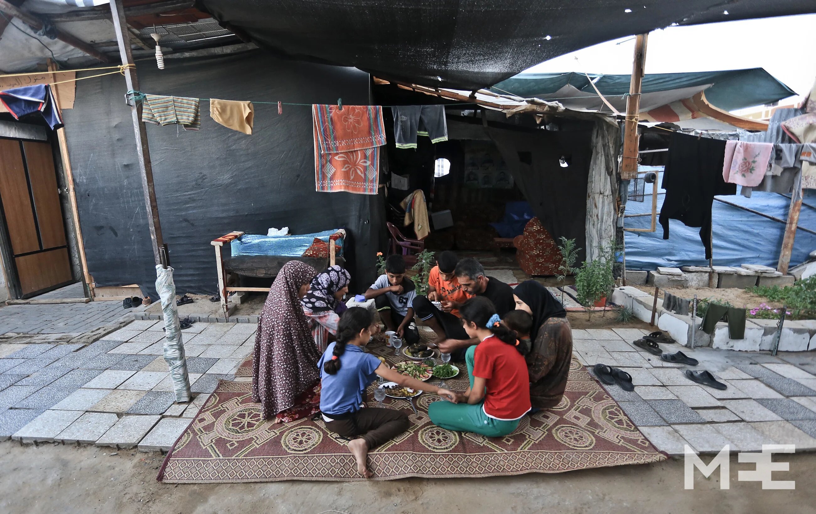 La famille d’Abou Aser se réunit pour prendre leur repas à la fin d’une longue journée de jeûne du Ramadan (MEE/Mohammed Asad)