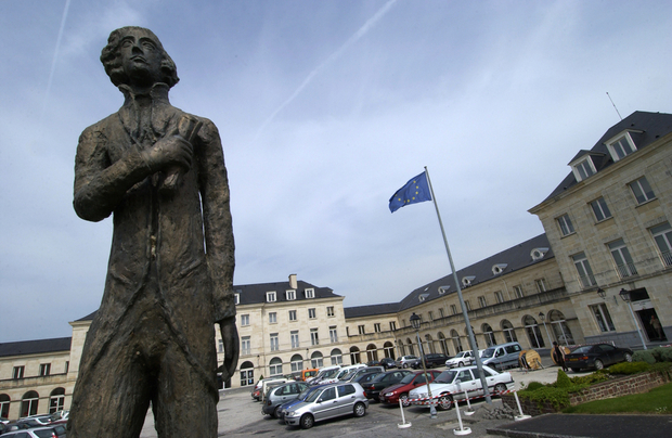 Photo : une statue du politicien et intellectuel français Alexis de Tocqueville, dans la cour du Conseil général de la ville de Saint-Lo en Normandie le 12 mai 2005 (AFP).